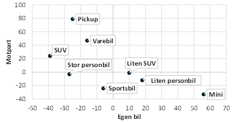 Type bil: Skaderisiko i den aktuelle bilen og hos motparten i kollisjoner